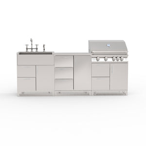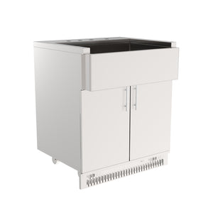 A sink cabinet in an outdoor kitchen typically combines both storage and utility. It’s designed to house the sink and often includes additional cabinetry for organizing tools, cleaning supplies, and other essentials.