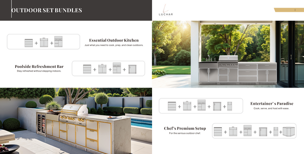 Luchar offer a highly customizable and flexible solution for both indoor and outdoor kitchens. They allow for easy adaptation to any space, maximizing storage efficiency while maintaining sleek, modern designs.