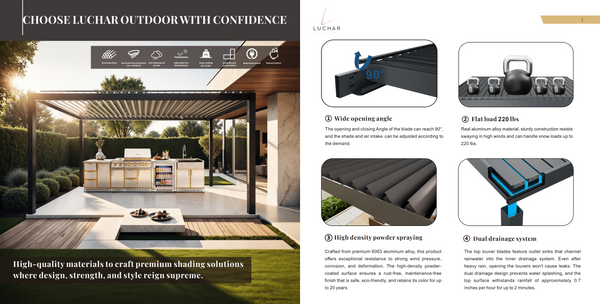 Experience premium outdoor living with our high-quality shading solutions, expertly crafted from durable materials where design, strength, and style reign supreme. From retractable canopies to pergola covers, every detail is engineered to elevate comfort and aesthetics in any outdoor space.